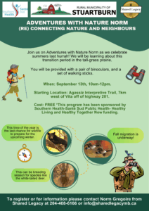 Join us on Adventures with Nature Norm as we celebrate summers last harrah and learn about this transition in the Tall Grass Prairie. You will be provided a pair of binoculars and a set of walking sticks to use during the event (limited supplies). And it’s FREE!